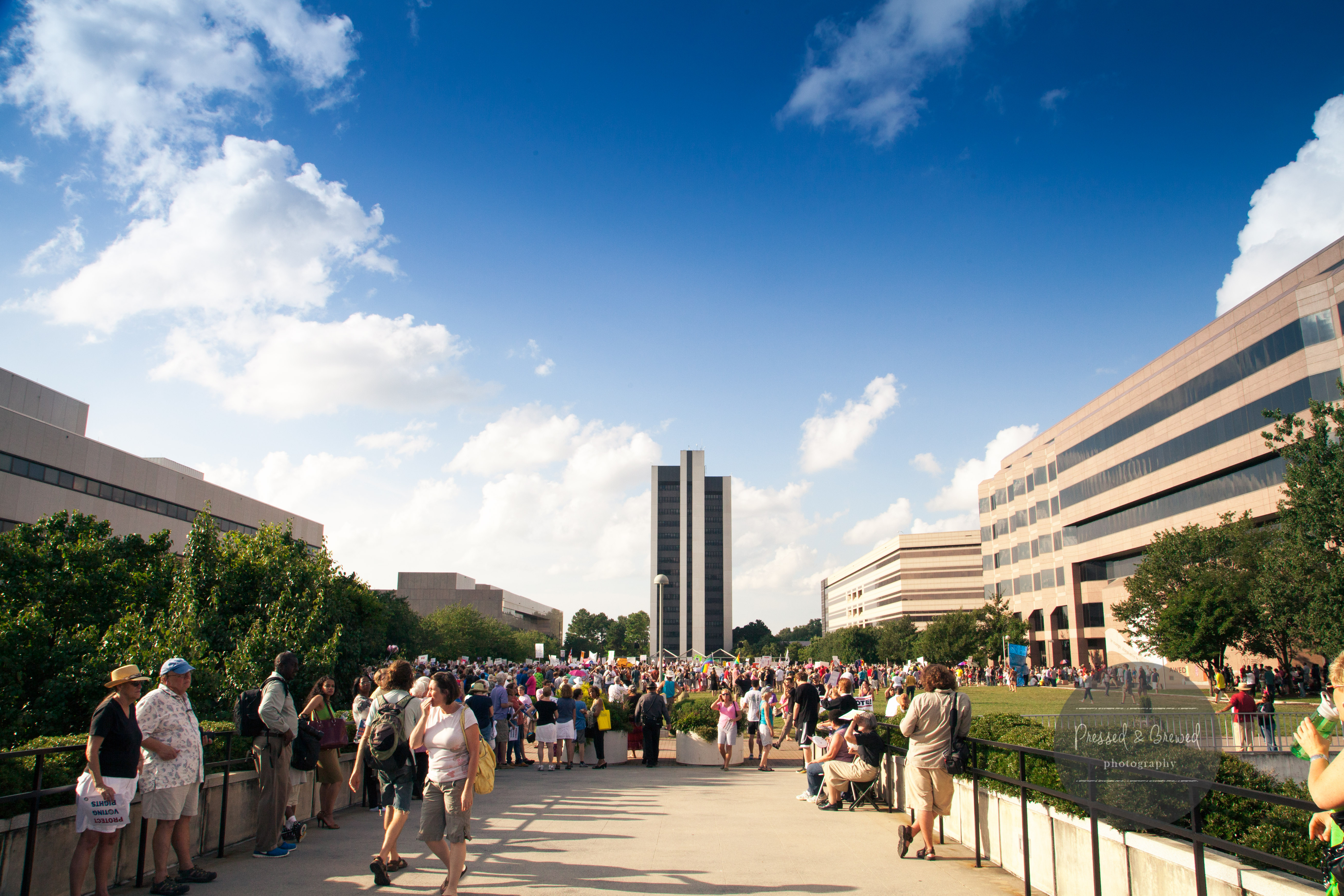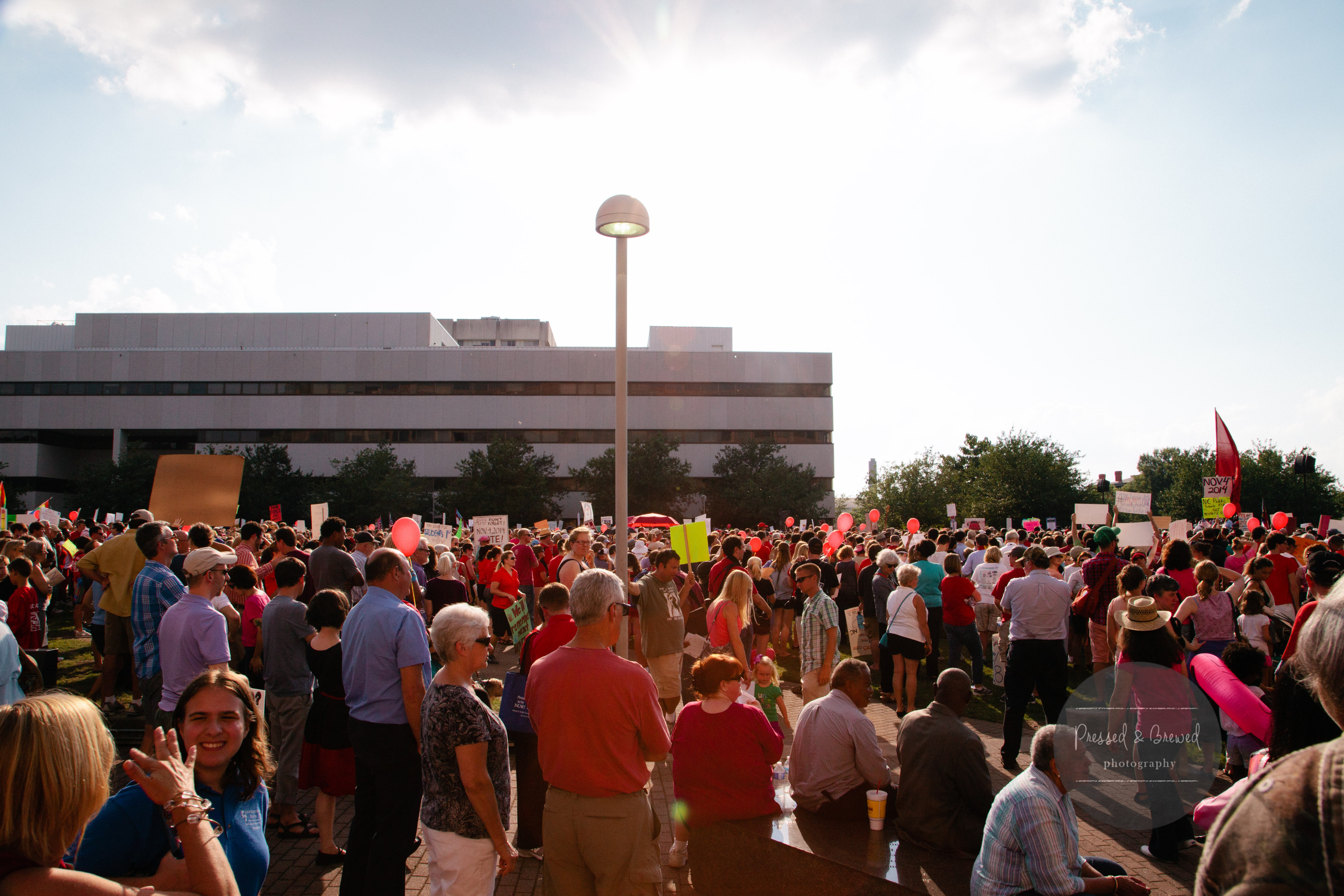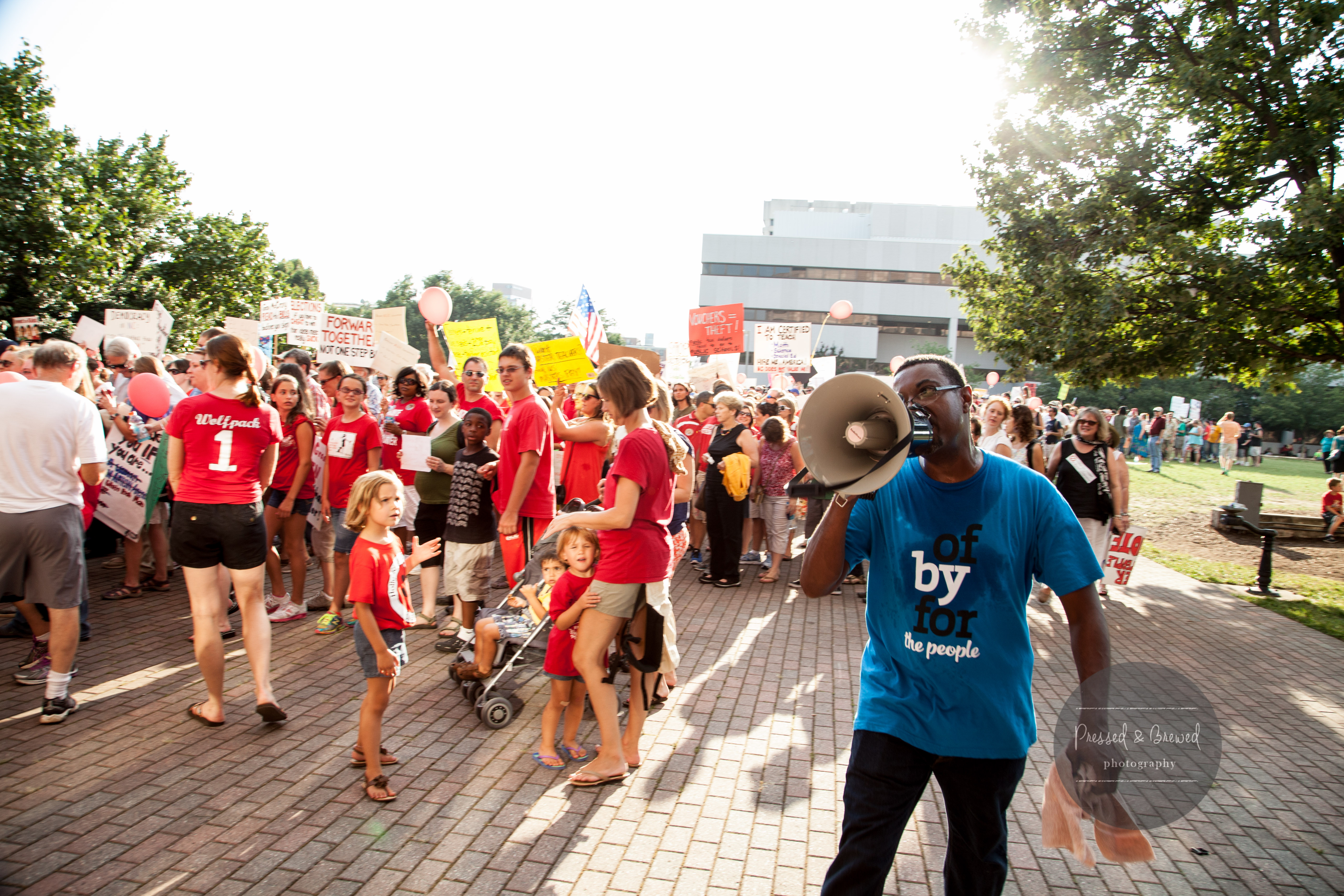 Part of what was so lovely about the Moral Monday gatherings were the conversations going on around the edges. People were talking to one another about what we each care passionately about for the good of a state we love. Because I was carrying a banner tagged specifically to public school funding, I was blessed with many conversations with school teachers. Some shared stories with me and with one another about whether their own principal and co-workers would be supportive of their being there. Some of us talked about confronting a climate of fear in a workplace, figuring out how to speak together about what we think is best for a school, a city, a region. I love this photo for the sense of gathering and the cloud configuration in the big sky above us. Maybe it is the West Texan in me, but that expansive sky makes me hopeful that the seemingly small conversations that go on in a big “movement” help each of us go back home and find ways to be brave also in our local contexts, spreading courage around like little seeds that will flower in ways even the grand strategists can’t anticipate.