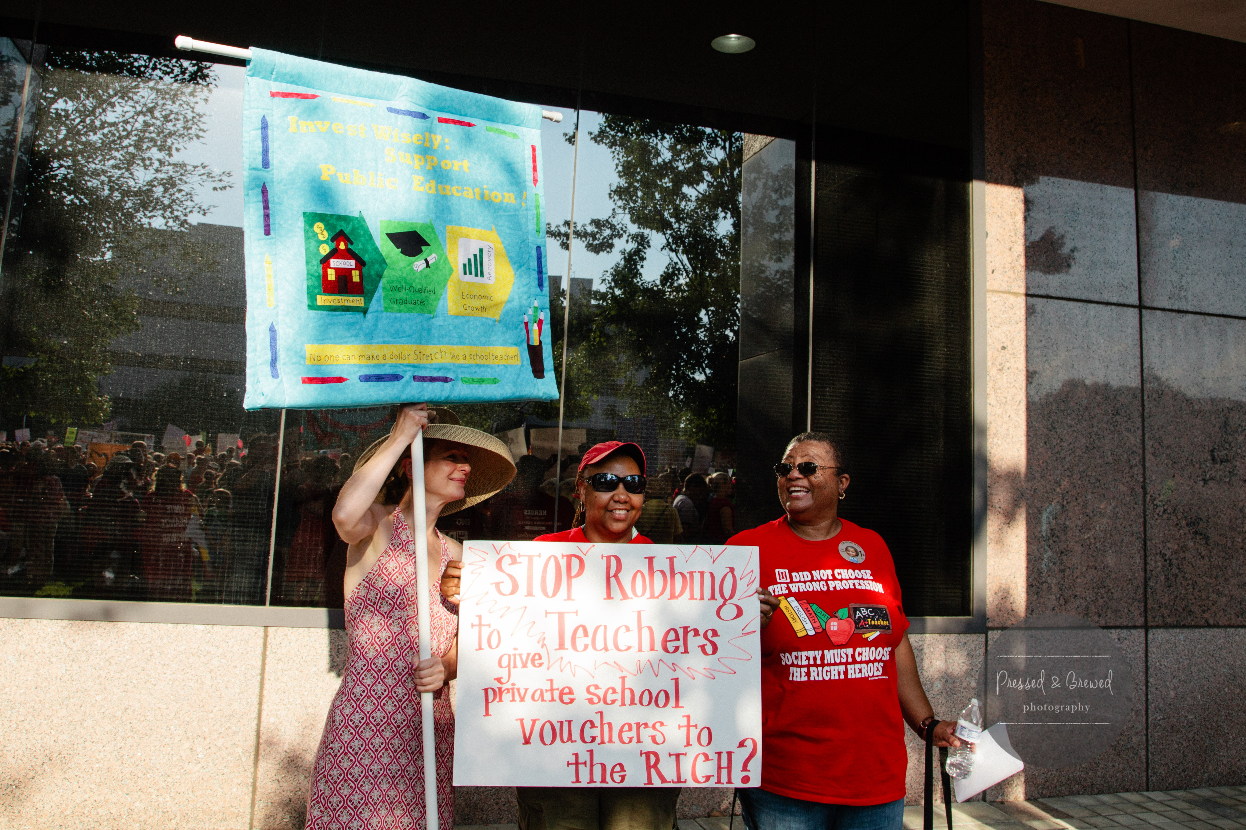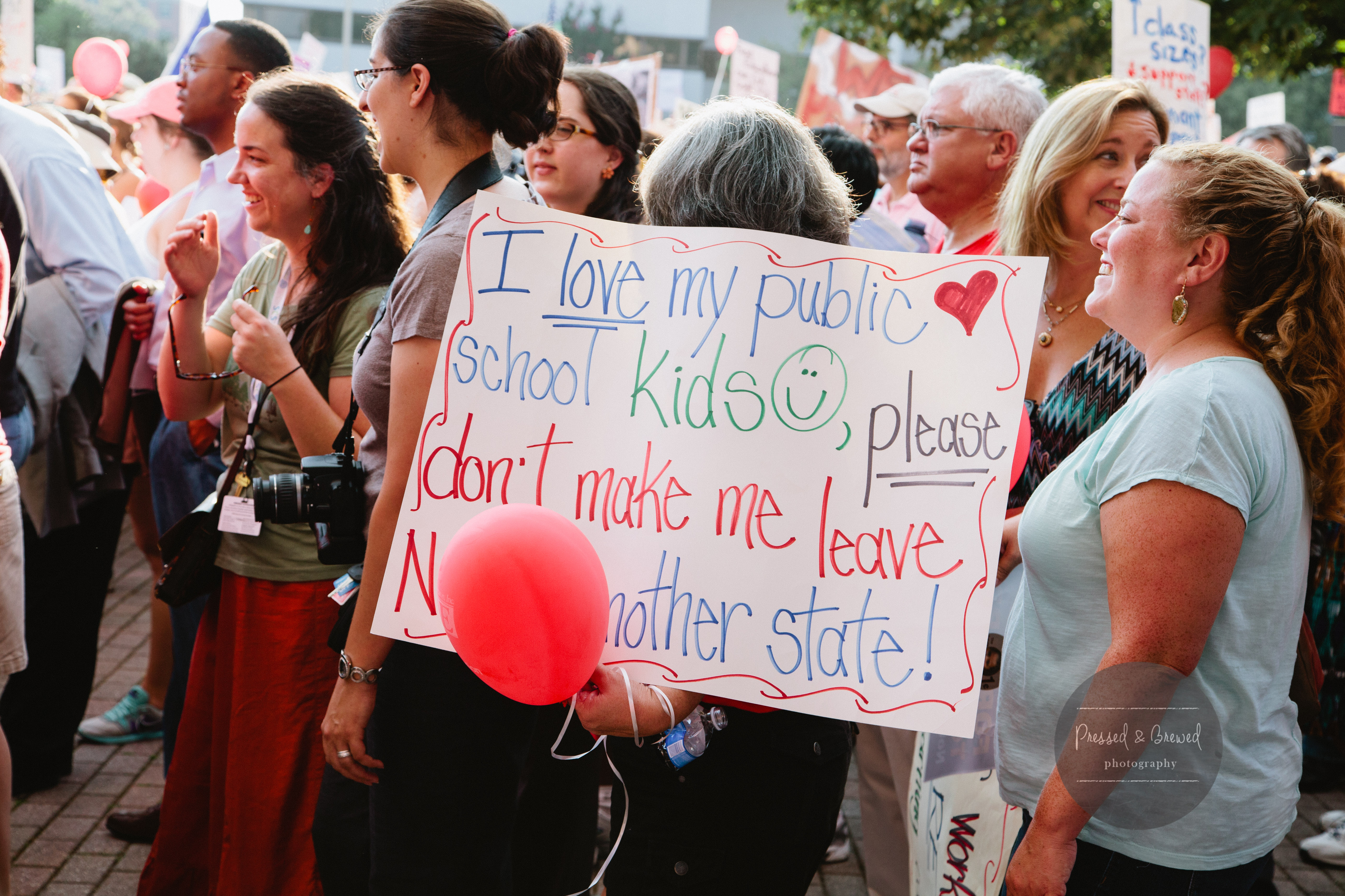 The final Moral Monday was spectacular, with thousands of public school teachers traveling hours to come and share their passion for teaching real children in actual schools across North Carolina. Their signs were clear, creative, courageous – just as you would expect from women and men who have committed to the daily work of quickening imaginations and brightening burgeoning minds. I was so grateful just to be there and shout myself hoarse with all of these inspiring people. This local television station did a short piece that showcased some of the women facing up to the mess with wit and persistence. You can find lots more links if you do a search for Moral Monday and “teachers.”